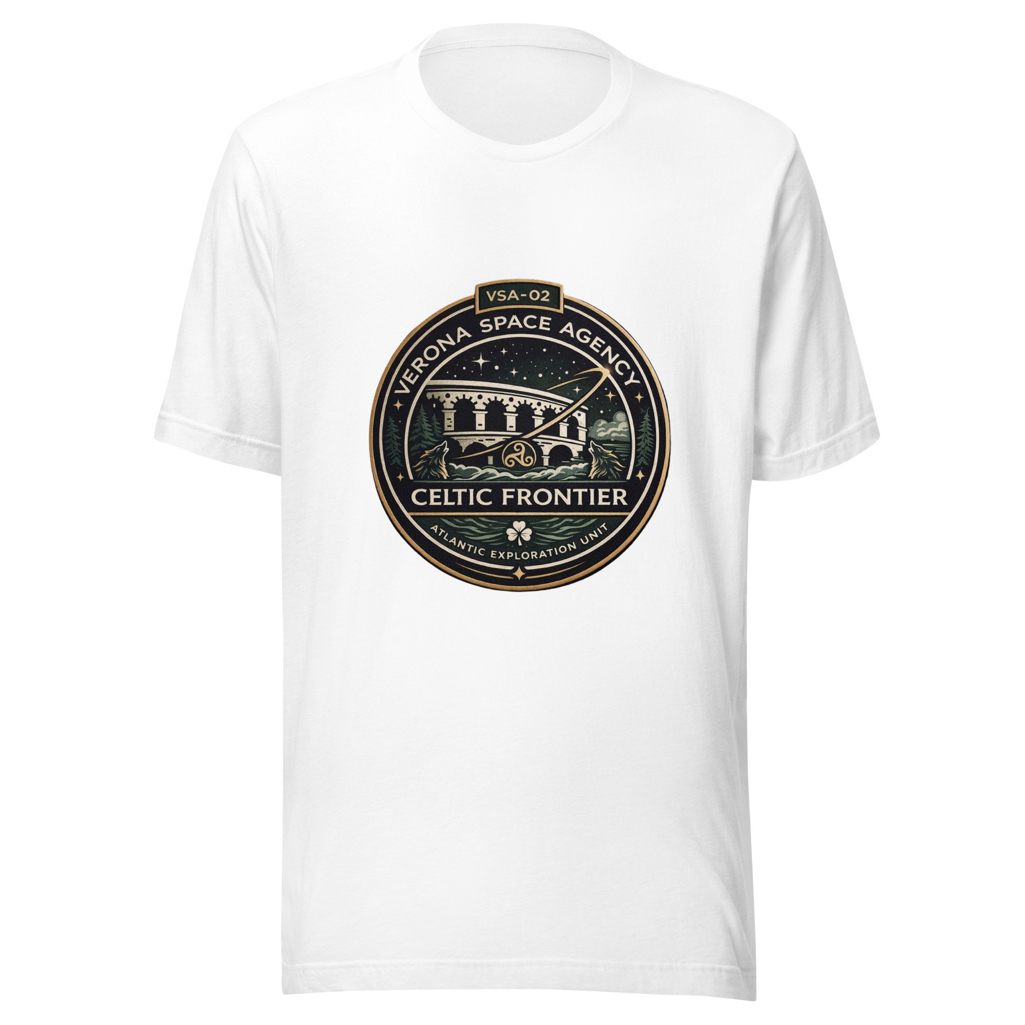 La patch Celtic Frontier sul petto e il casco VSA dietro al colletto trasformano questo capo in un simbolo ufficiale della Verona Space Agency.
